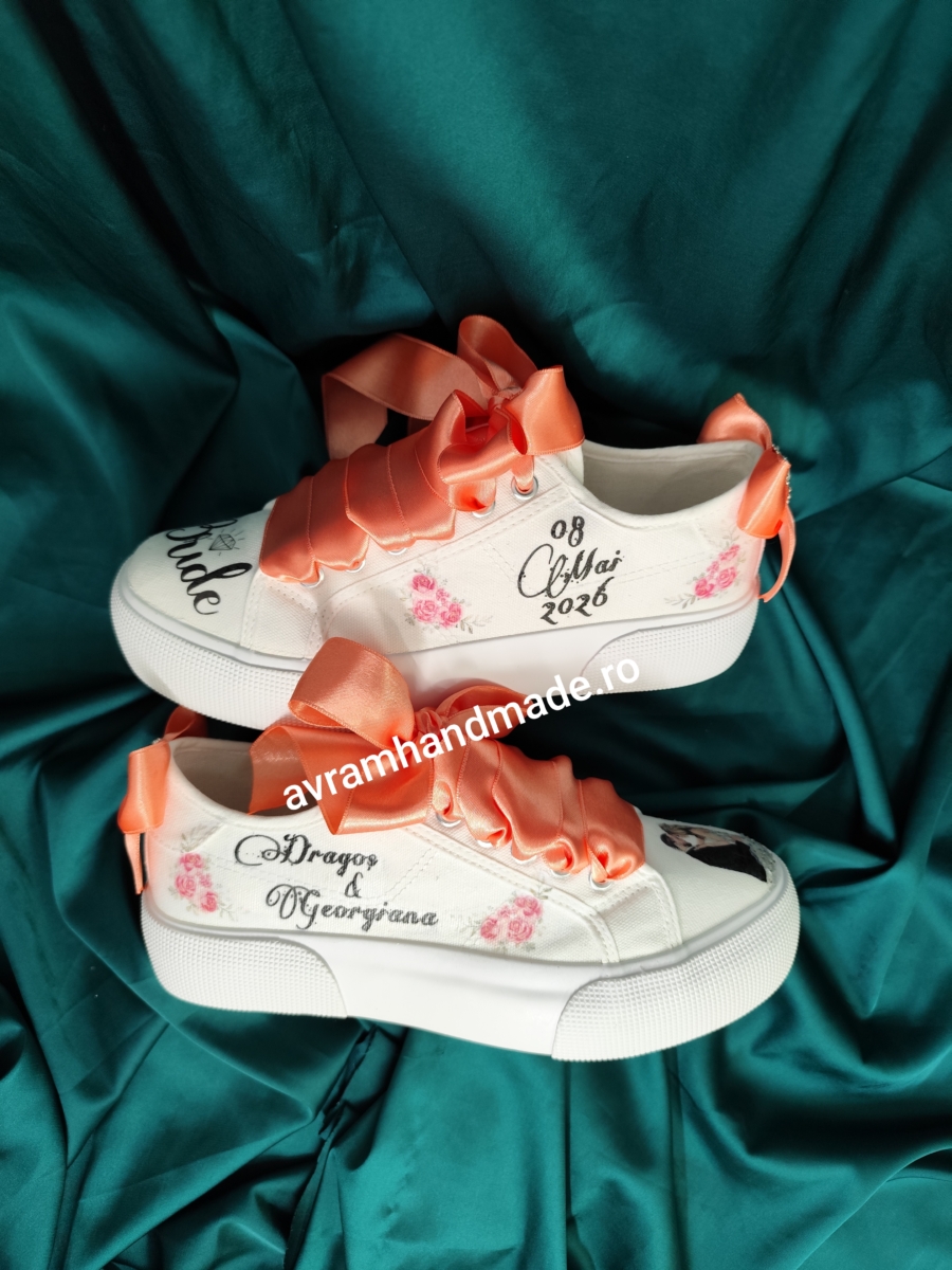 Când să comand? Deoarece nu avem produse pe stoc, comenzile trebuie făcute din timp pe WhatsApp sau facebook messenger. Comenzile pentru nuntă se fac cu minim 5 săptămâni înainte de marele eveniment. Iar cele pentru aniversări și cadouri personalizate cu minim 2 săptămâni înainte ! Tenișii personalizați nu ii putem…