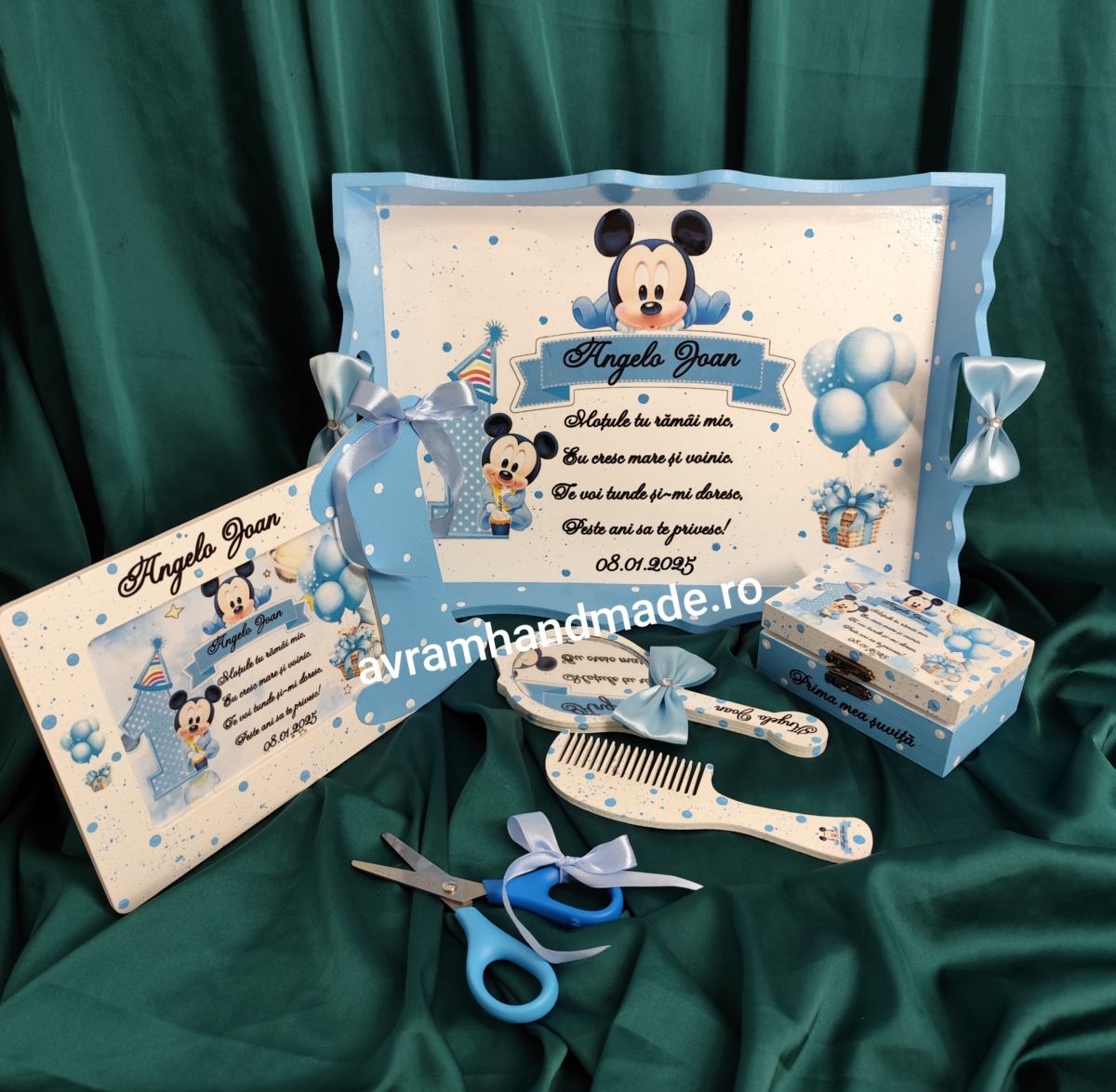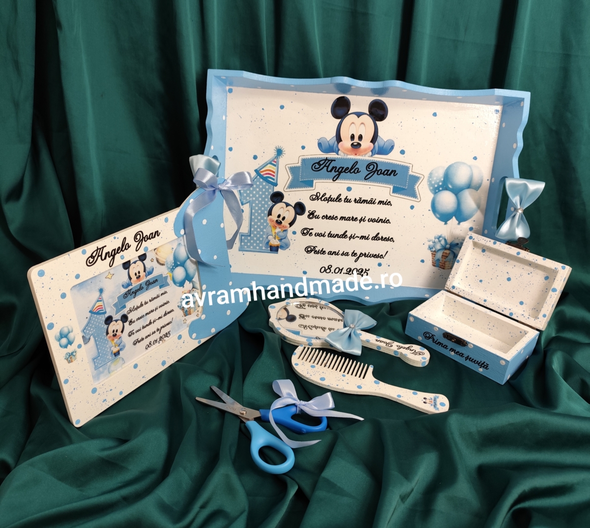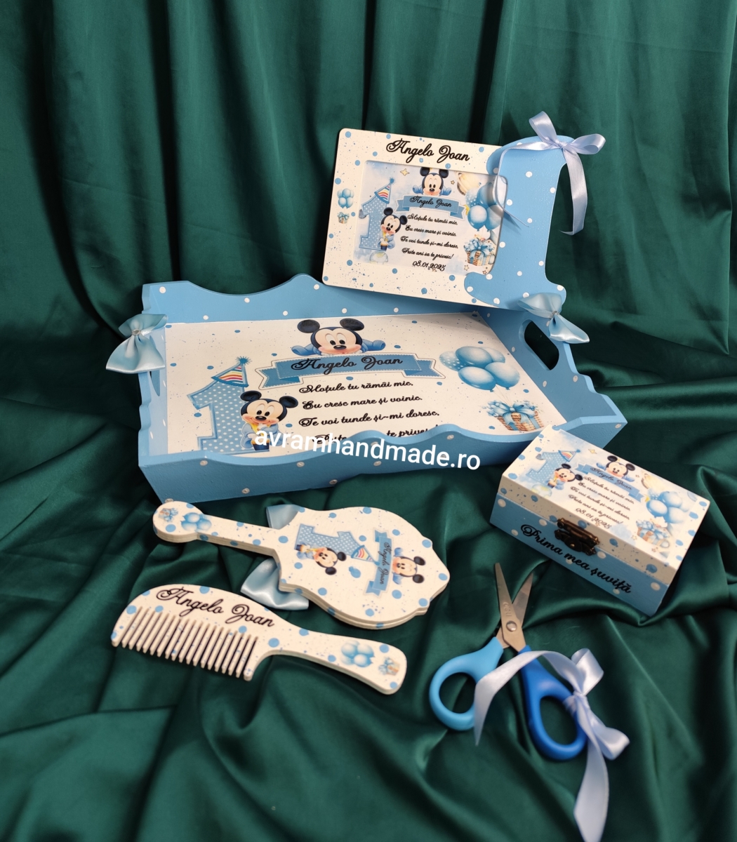 Include: tavă mdf, rama foto,perie, oglindă,cutie perișor și foarfecă.