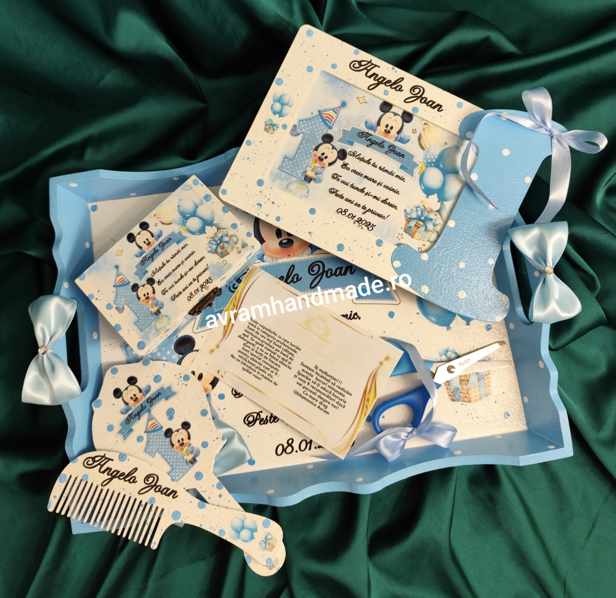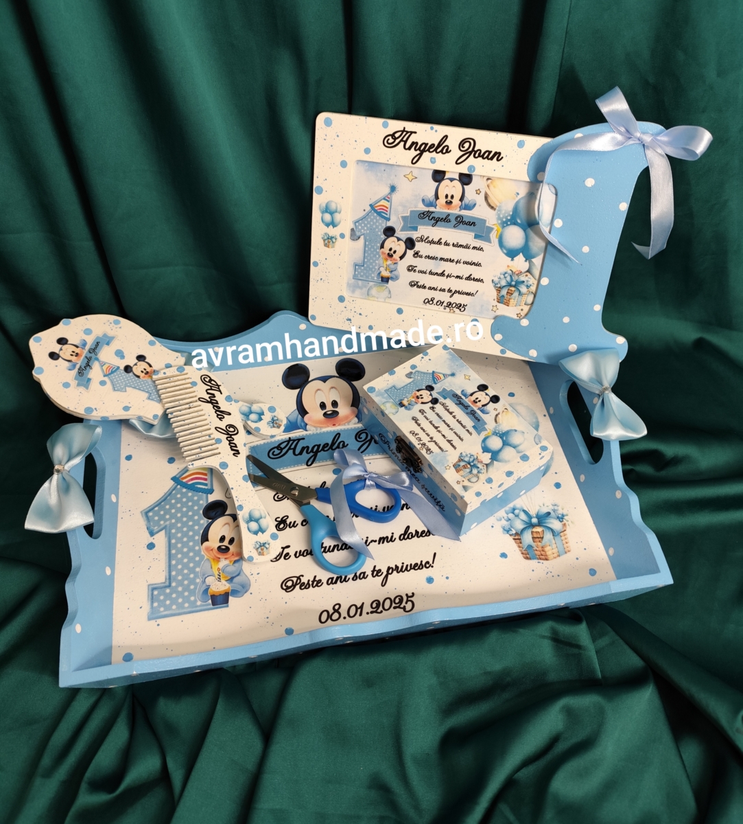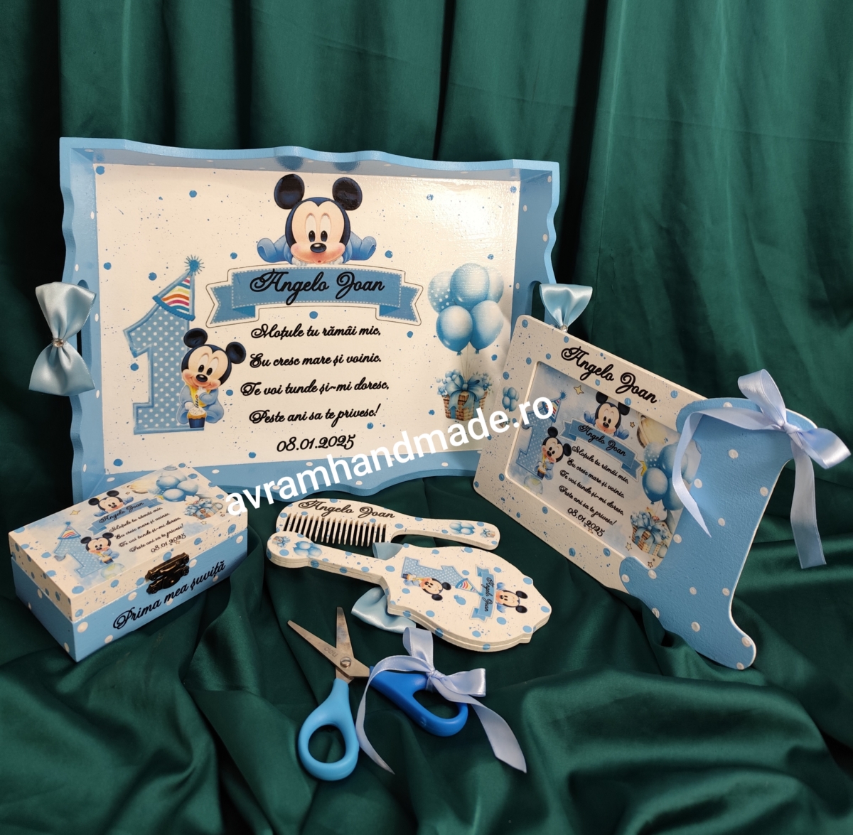 Include: tavă mdf, rama foto,perie, oglindă,cutie perișor și foarfecă.